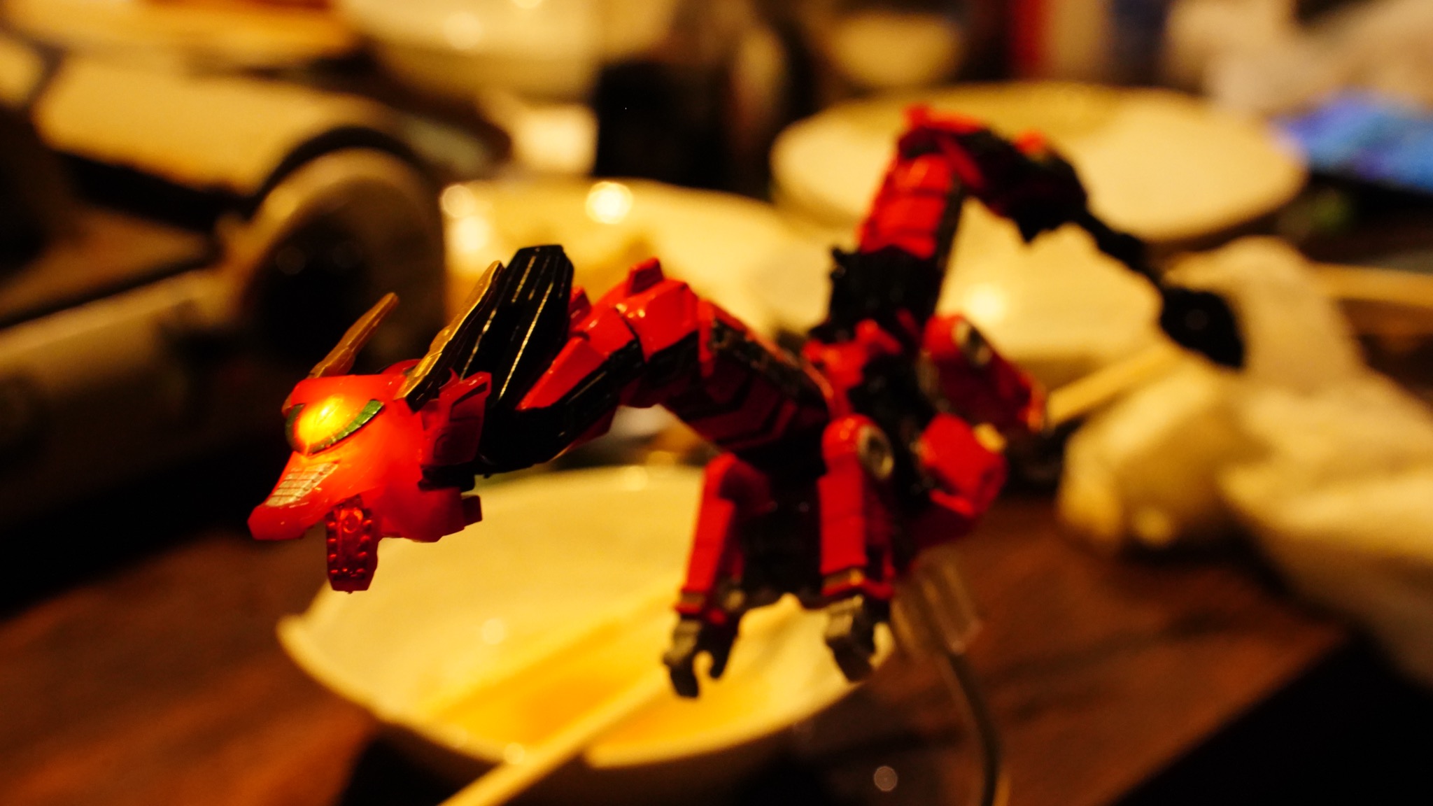 第2部は場所を変えて個室居酒屋で、飲んで食べて食玩並べて語り合いの続きです。