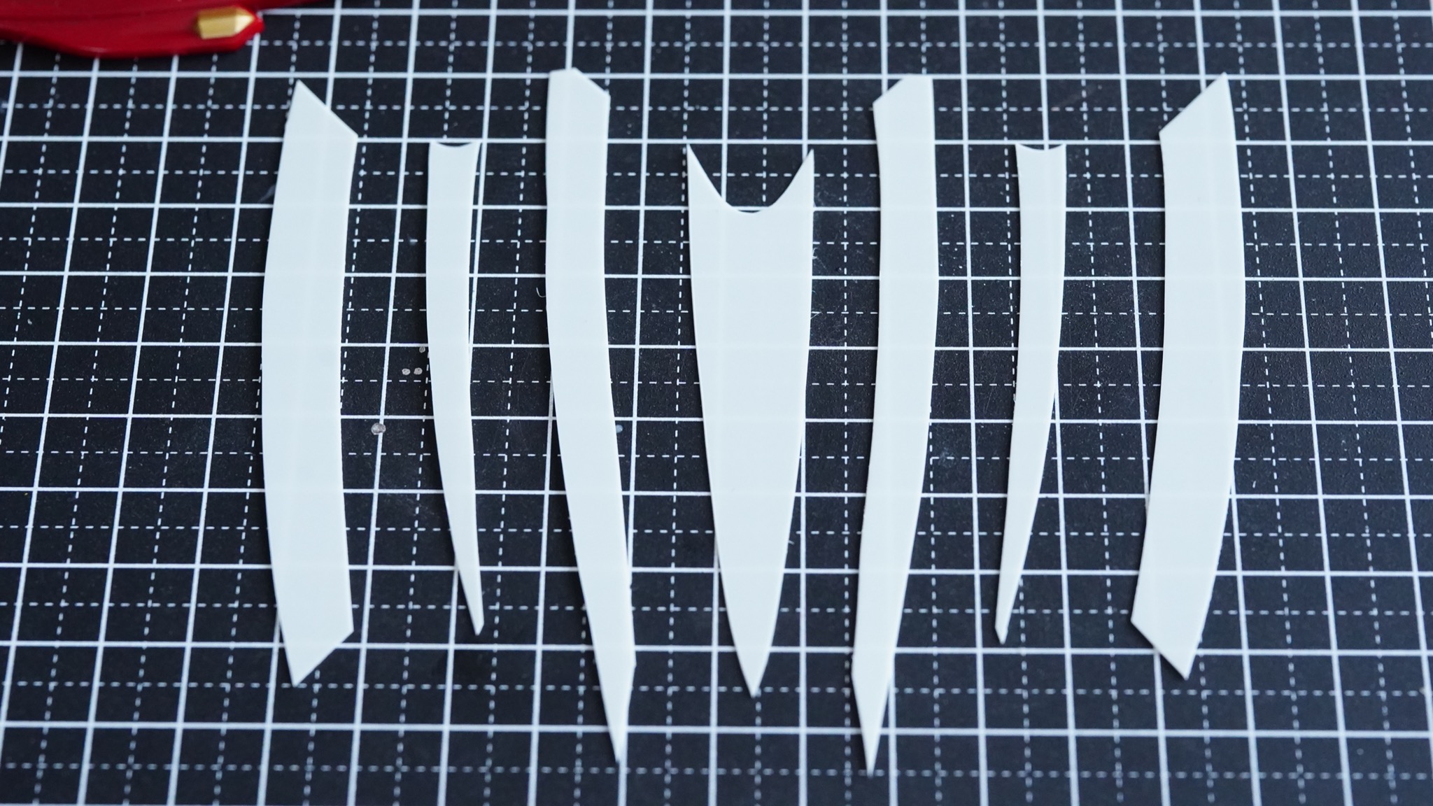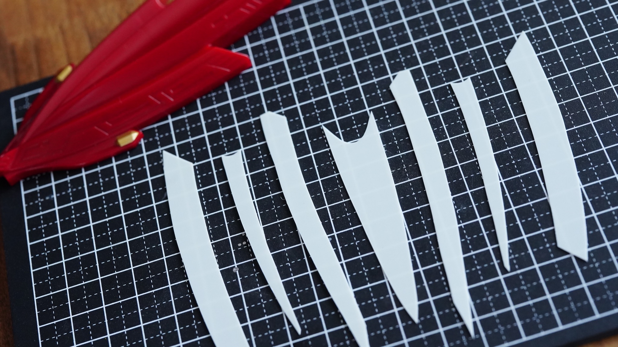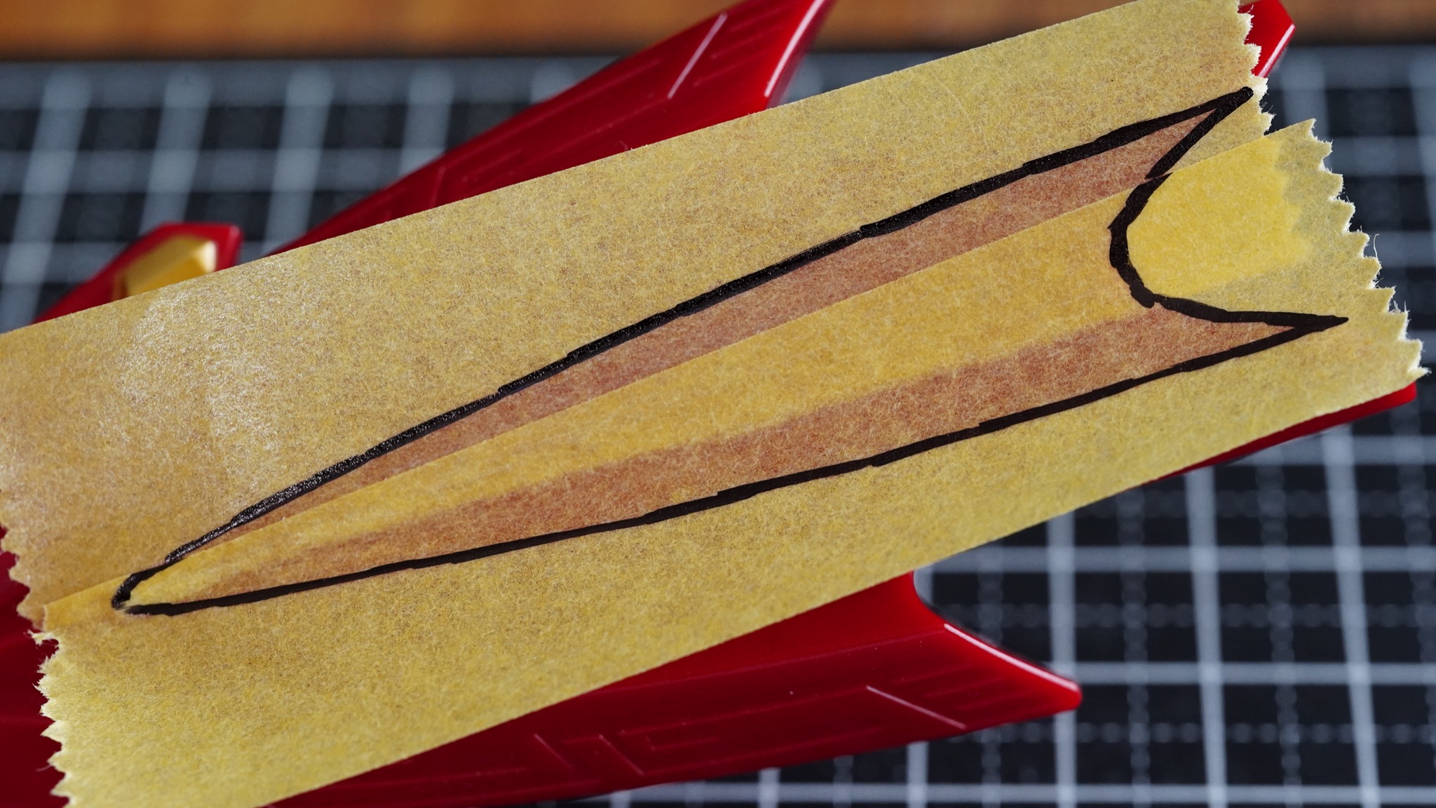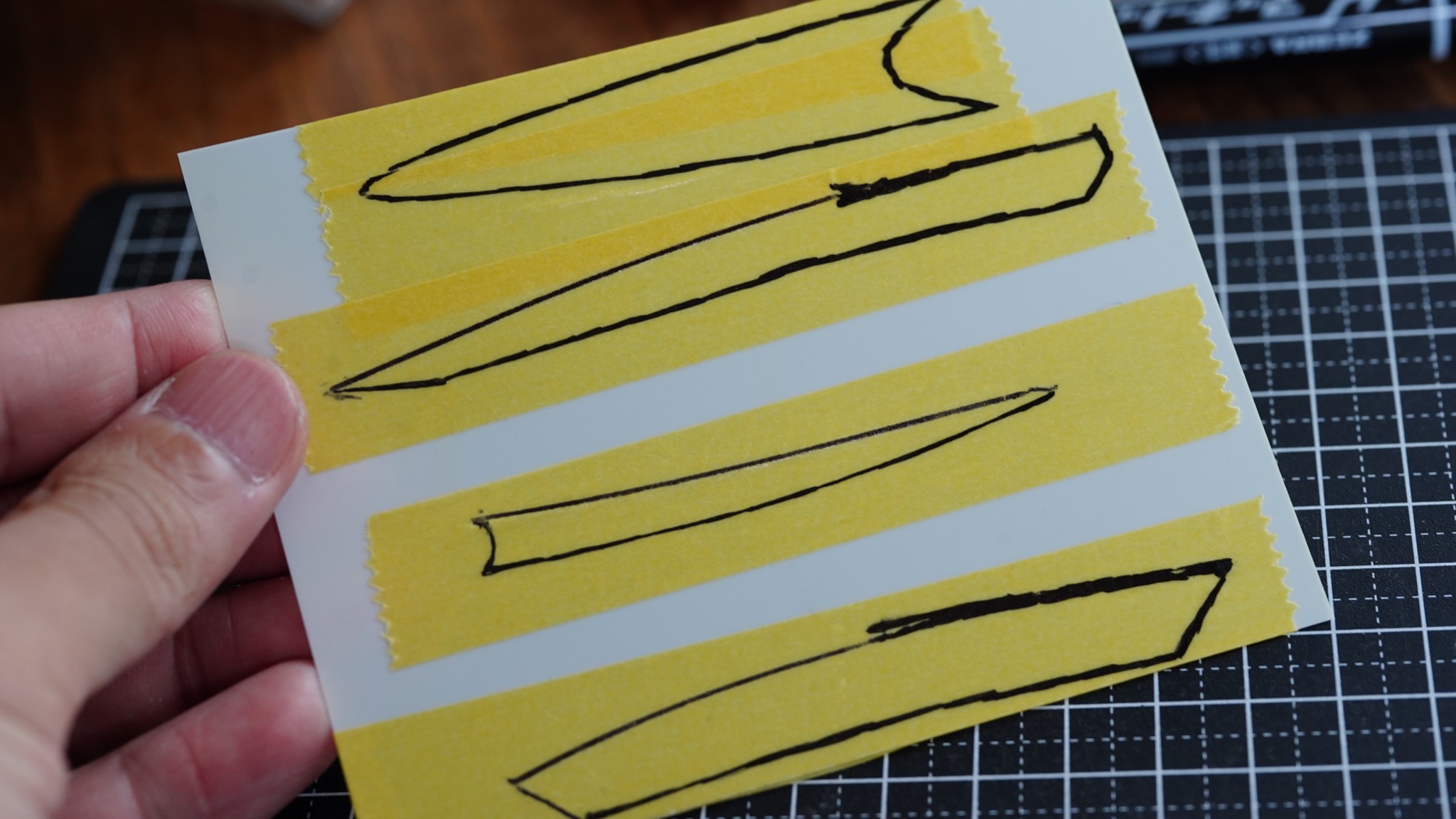 このマスキングテープをガイドにして、プラ板を切り出していきます。