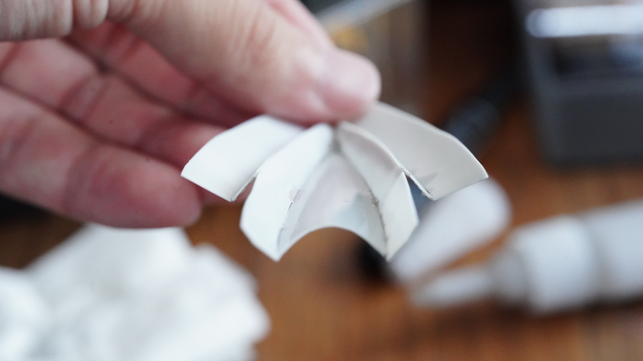 切り出したパーツにカーブを付けて、パーツ同士を瞬間接着剤で無理やり貼り合わせたら。。。