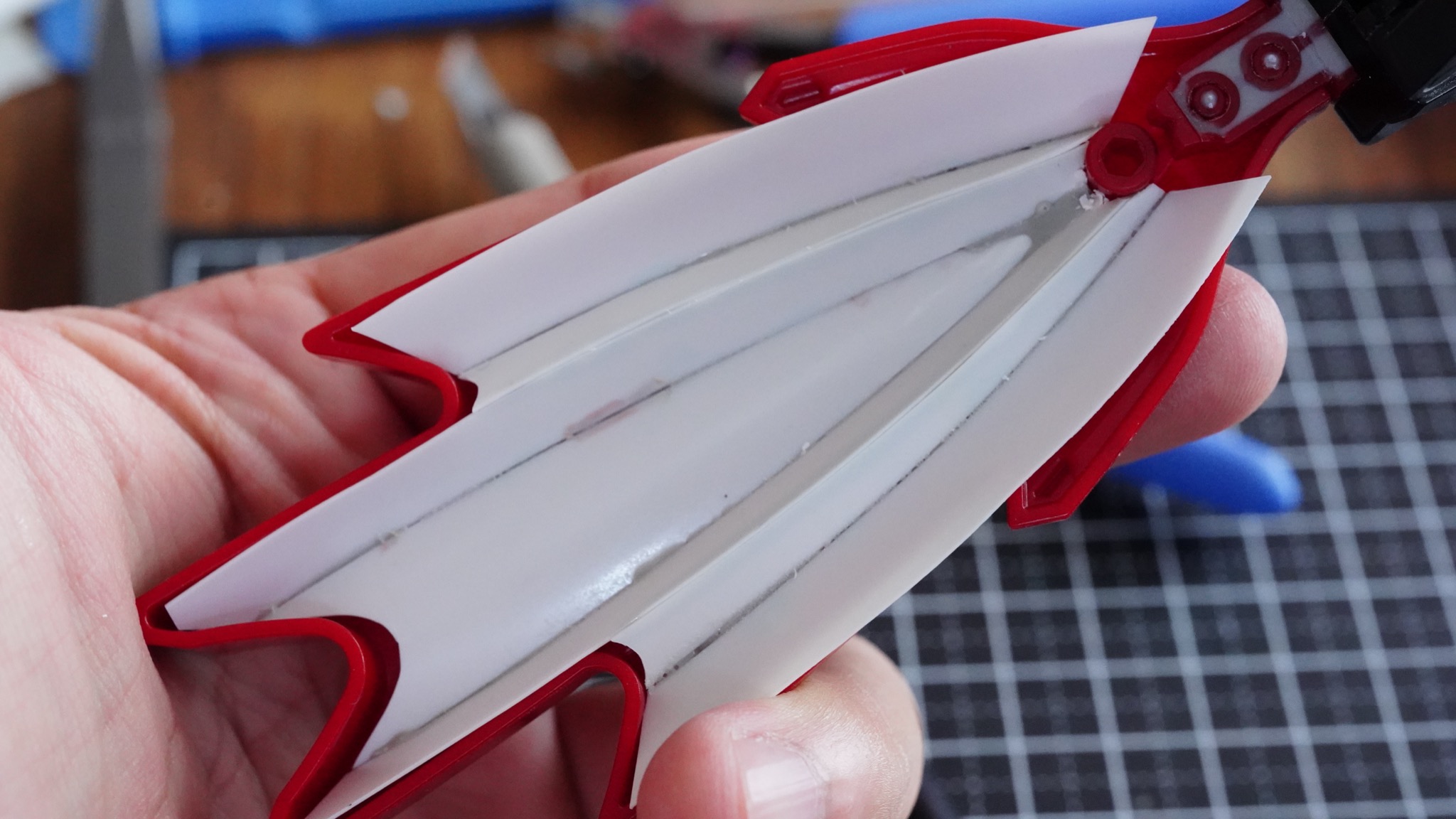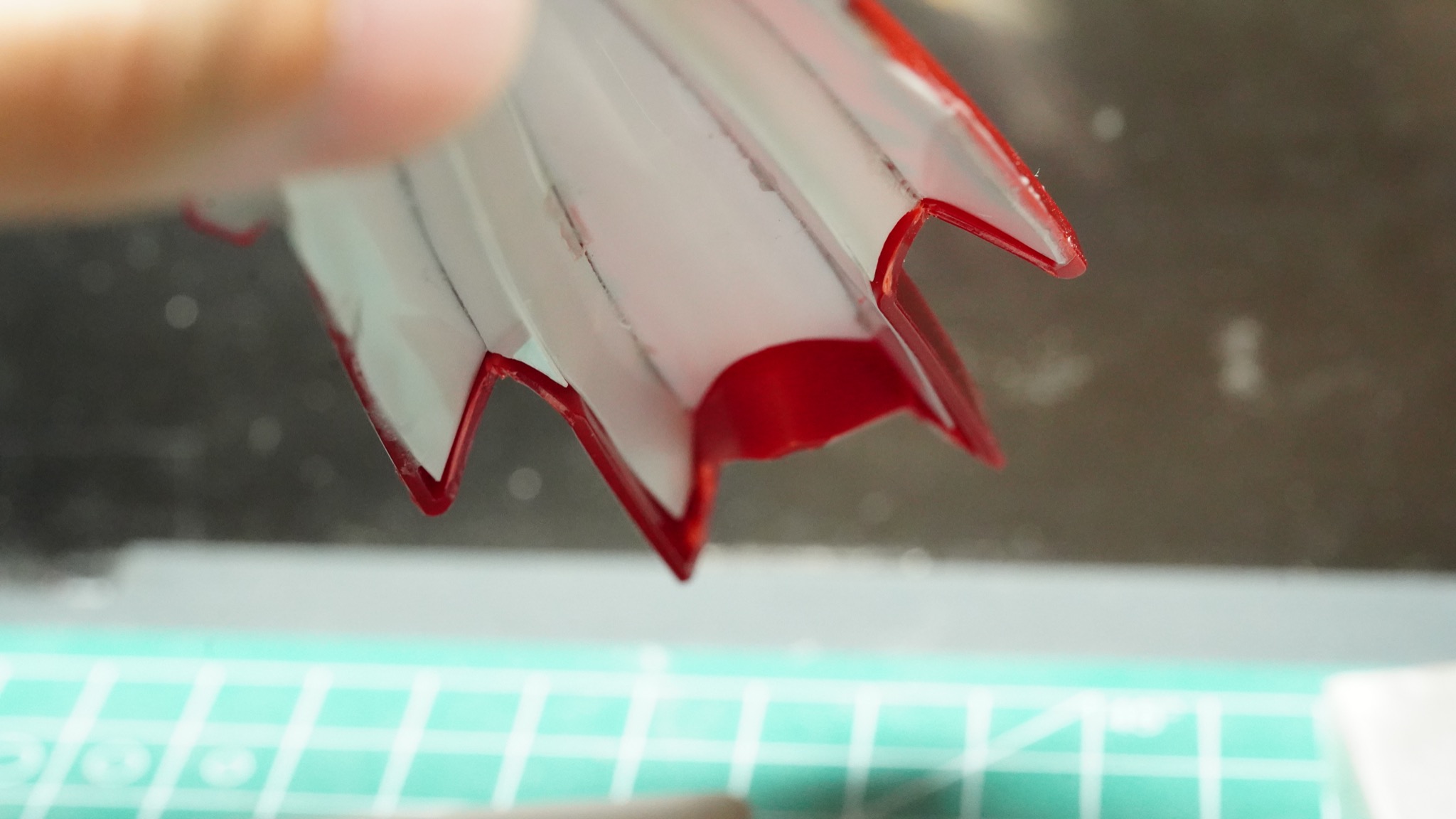 表側の形状に合わせてニッパーでざっくりと切り落として、あとはデザインナイフや紙やすりで形状を整えていきました。