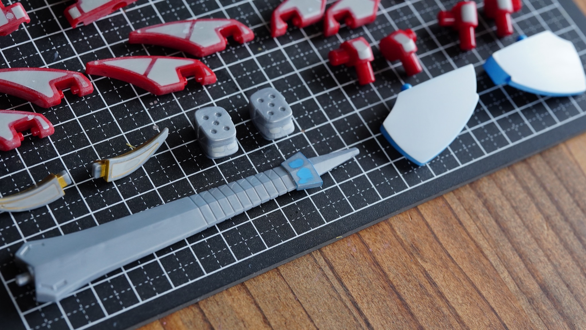 基本的にはガオナイトのブラックバージョンの時と同じですが、追加パーツとなった見栄え用ソードパーツはパーツ分割線を消すようにパテ盛りしてます。