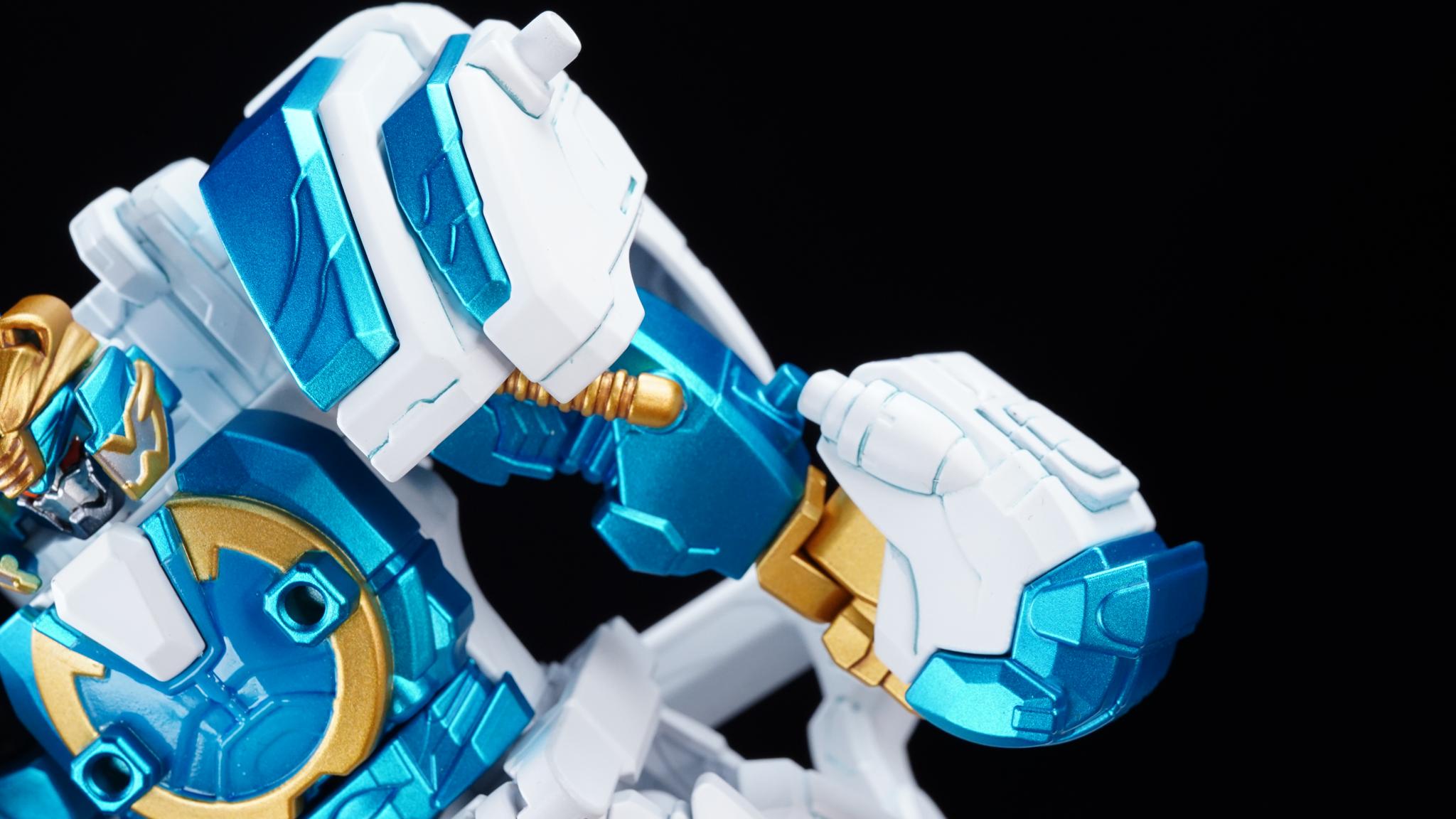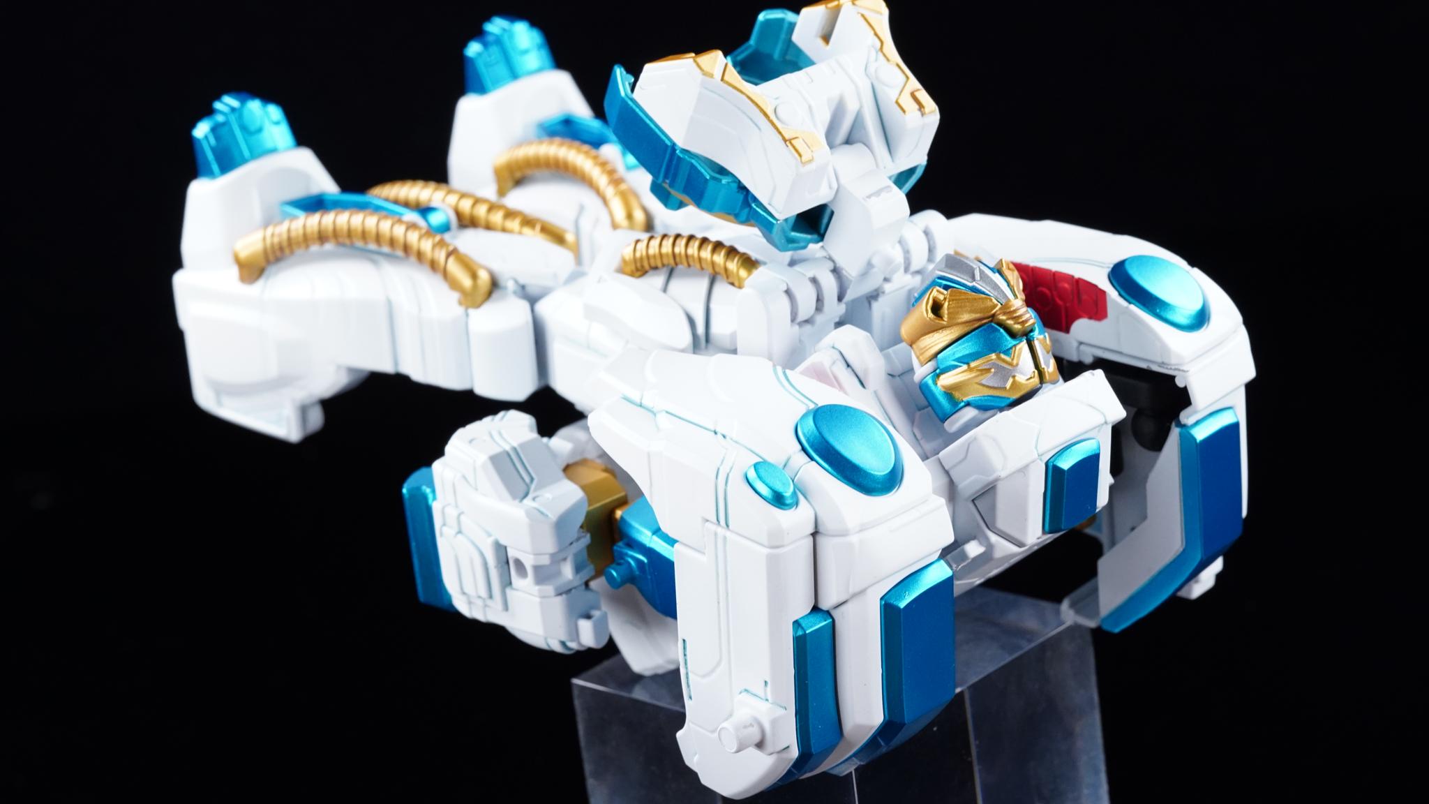 白とメタリックブルーを基調としたカラーリングの、ゴジュウポーラーのアイテムたちです。