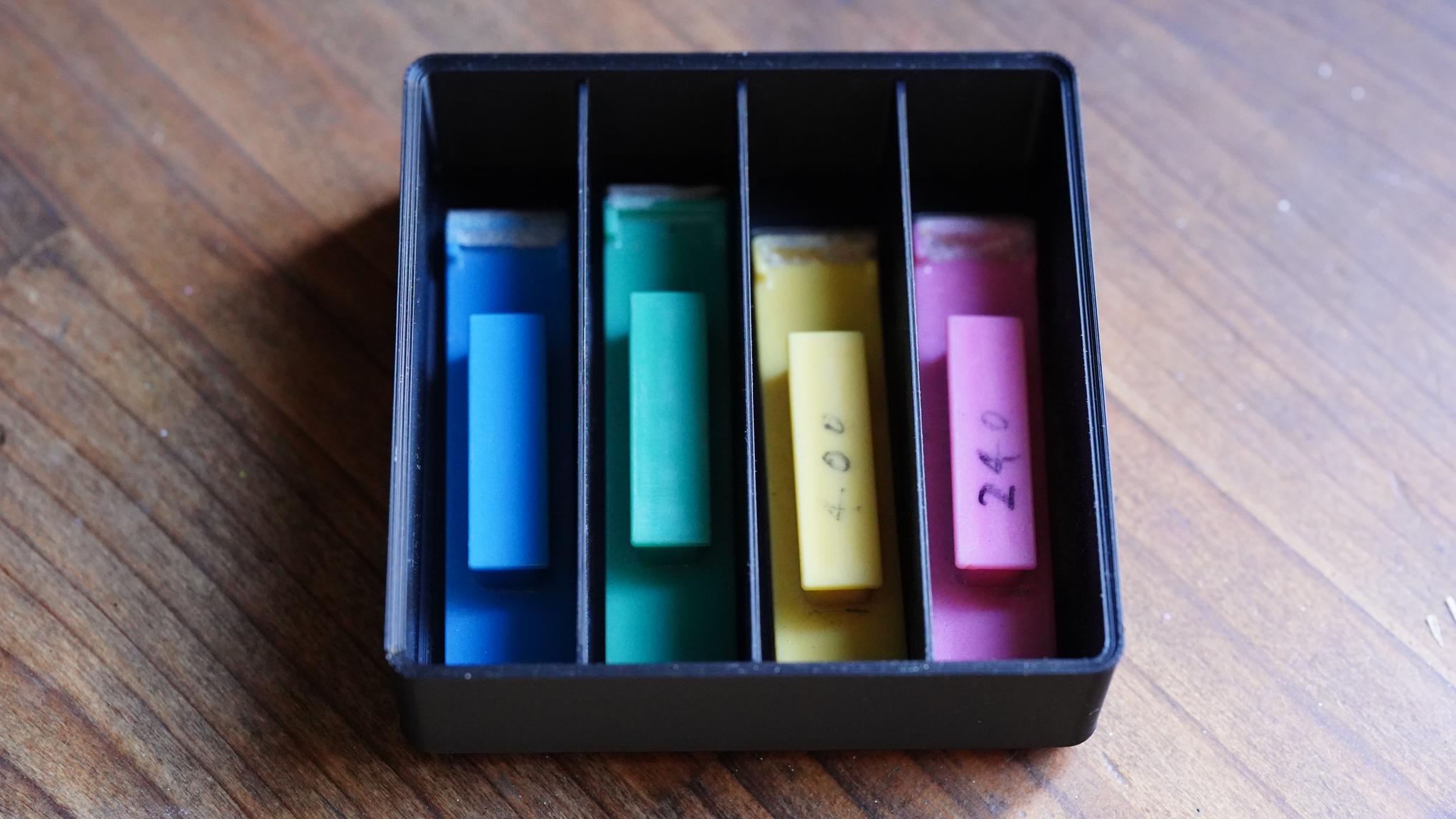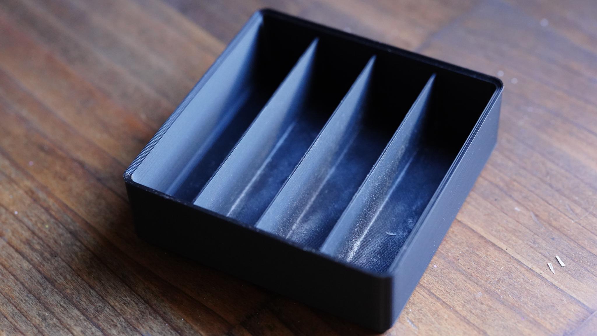 タイラー4種類がぴったり収まる仕切り付きのケース。