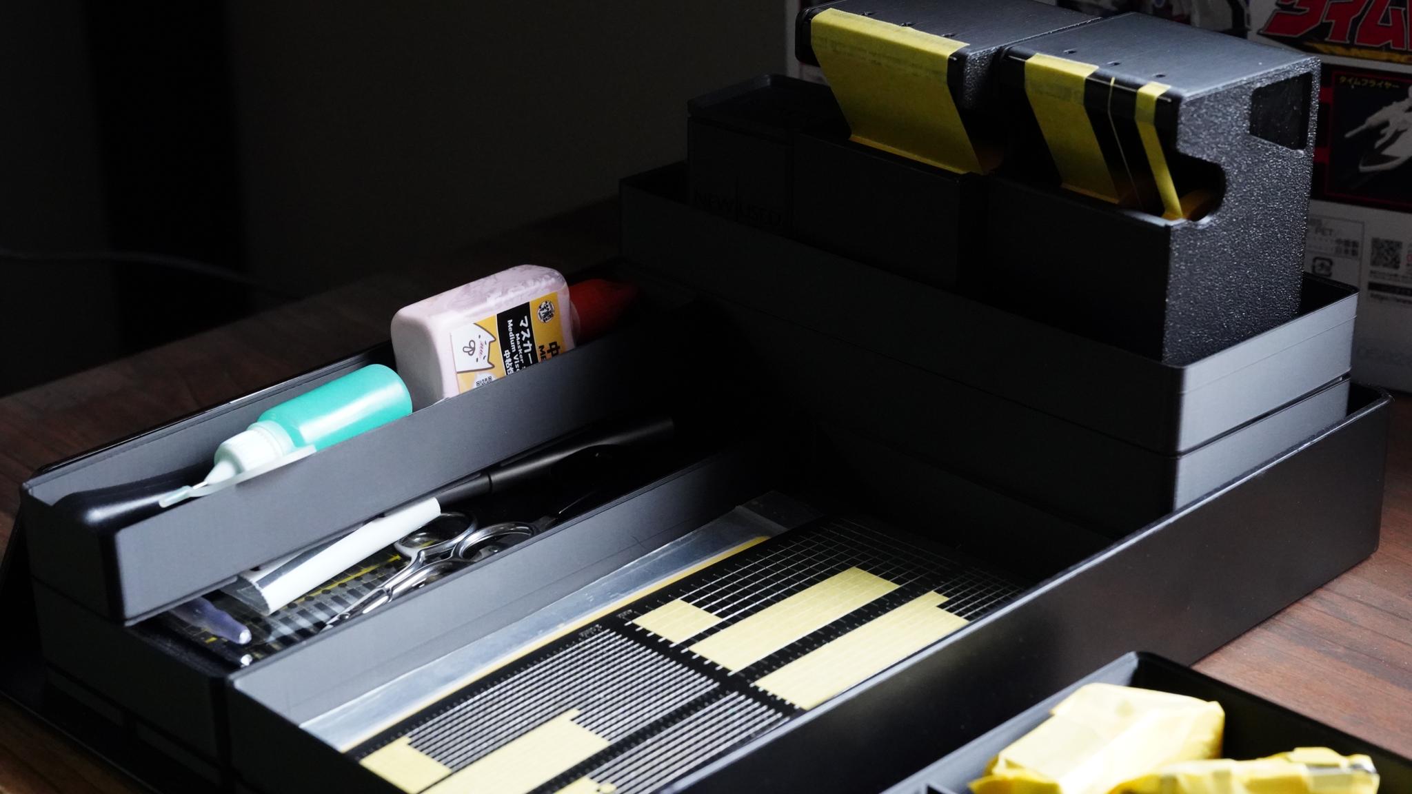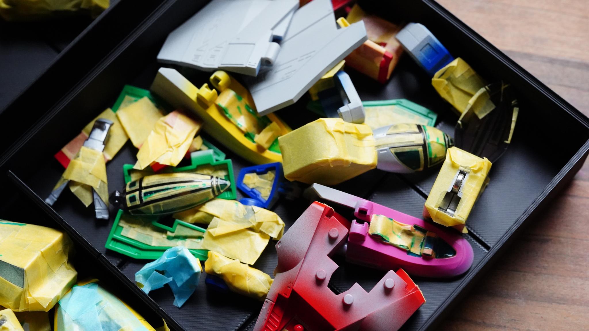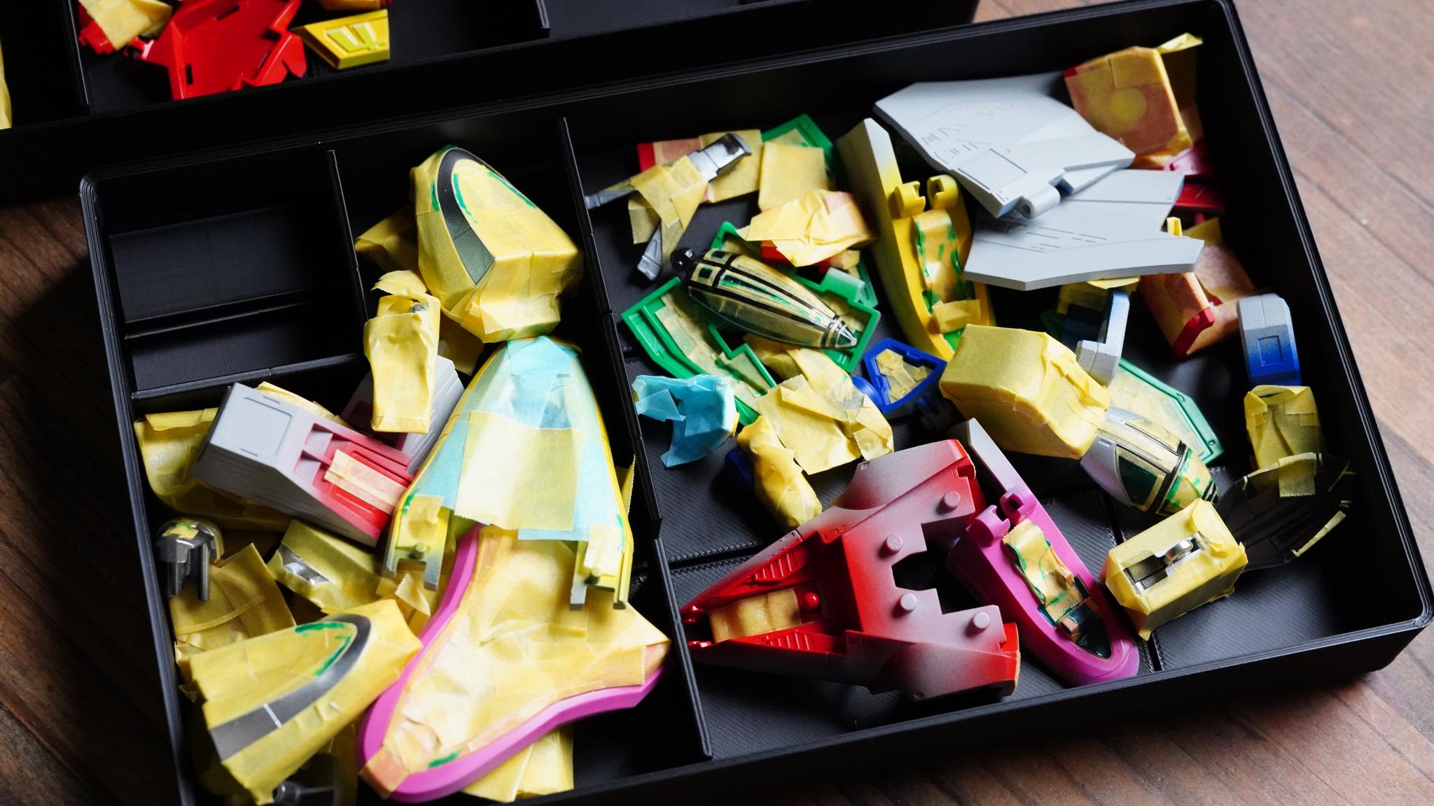 塗装する色ごとに、「ユニットトレイ仕切り可変3-5-S」を使って仕分けています。