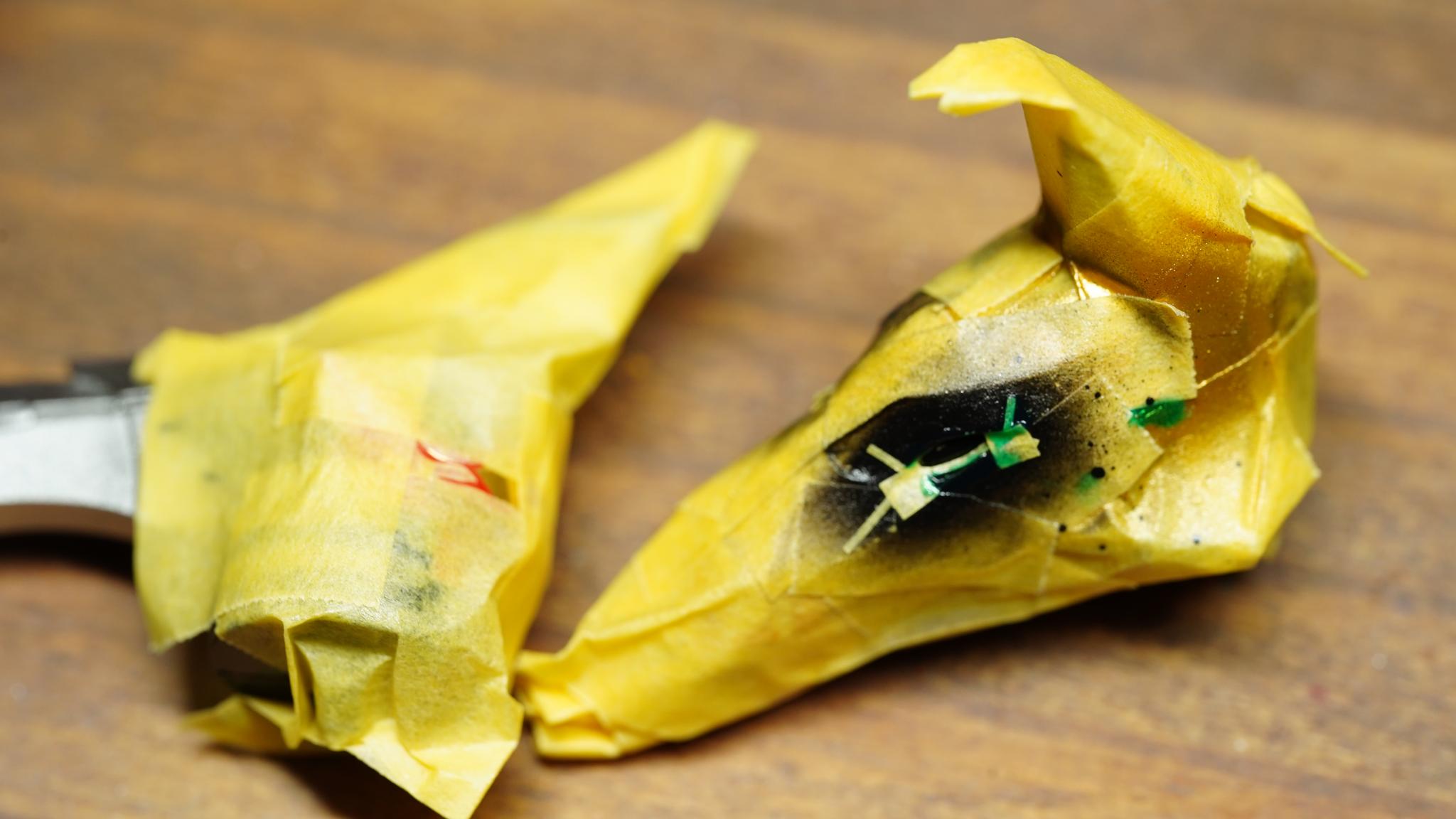マスキングゾルのチョン付けが決め手です。